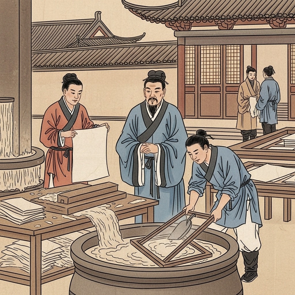 사람들은 점토판, 대나무 조각(죽간), 양피지 같은 무겁고 비싼 재료에 지식을 기록해야 했어요. 그러던 서기 105년, 중국 후한 시대의 관리였던 ‘채륜’이 역사적인 발명을 해냅니다. 그는 나무껍질, 낡은 천, 헌 그물 등을 물에 불려 찧은 다음, 얇게 펴서 말리는 방식으로 가볍고 저렴하며 쓰기 편한 새로운 기록 매체를 만들어냈죠. 이것이 바로 현대 종이의 시작, ‘채륜지’입니다!